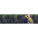 Lange bedrukte jurk met smalle verstelbare bandjes. V-hals en gesmokte bies onder de buste. Ruches aan de onderkant.